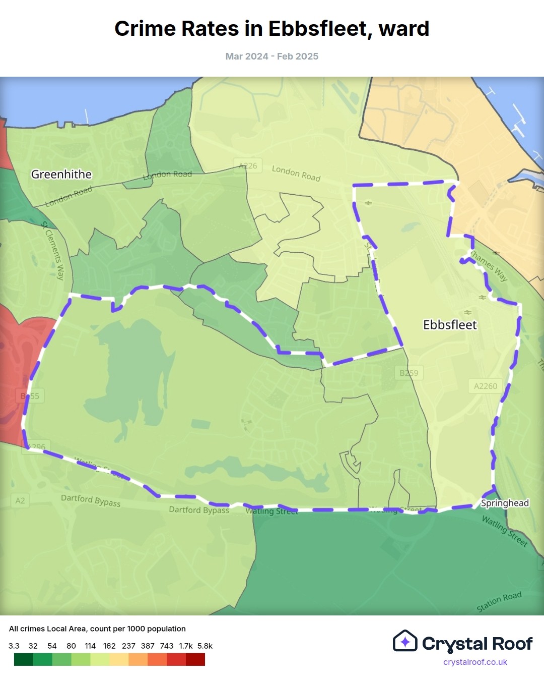 Ebbsfleet, (ward) includes areas with the following crime ratings (see map):