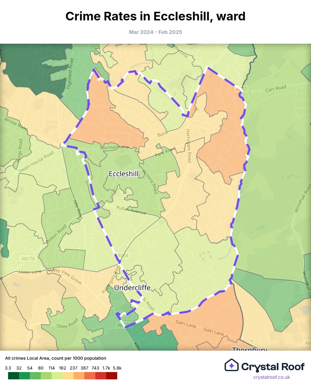 Eccleshill, (ward) includes areas with the following crime ratings (see map):