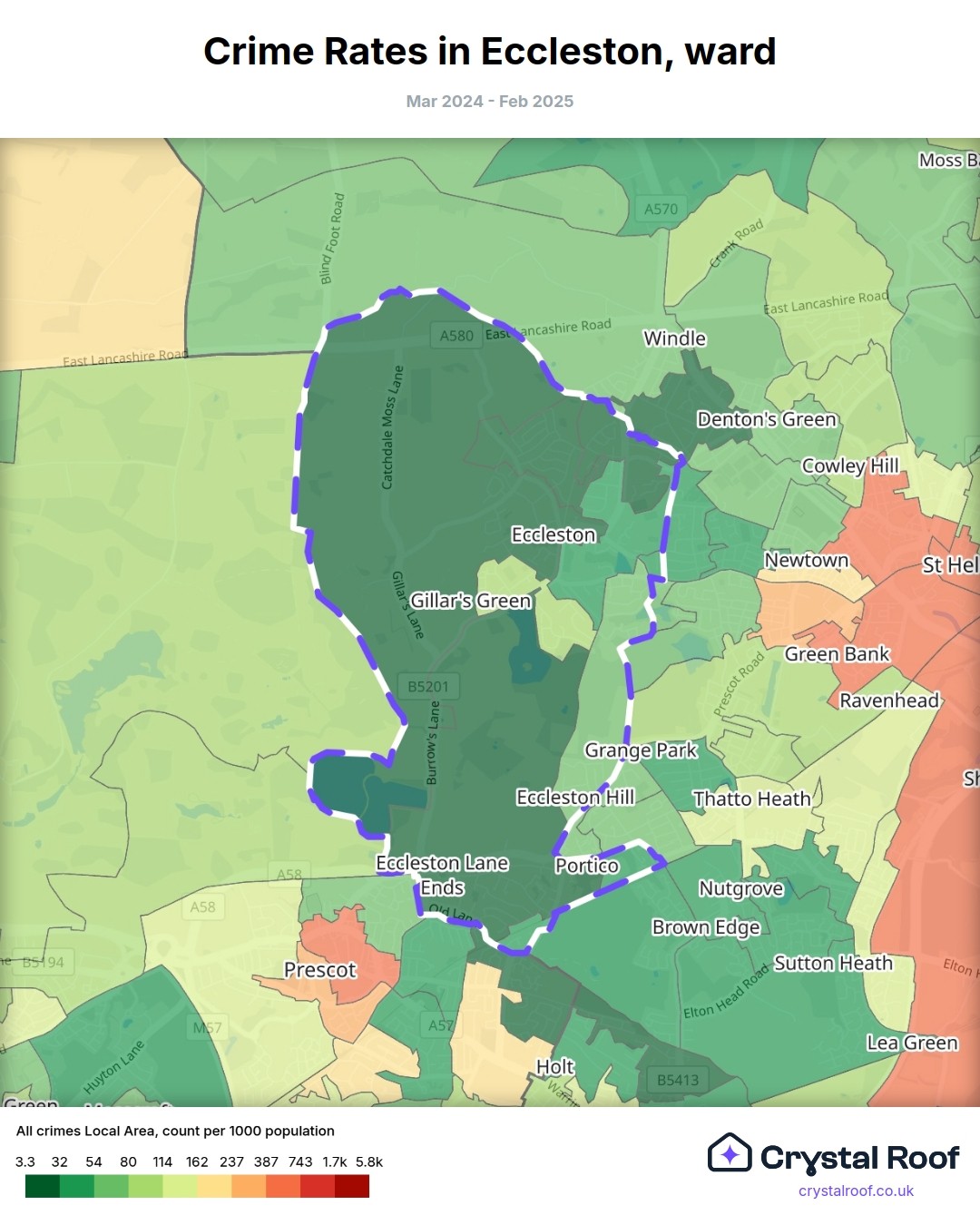 Eccleston, (ward) includes areas with the following crime ratings (see map):