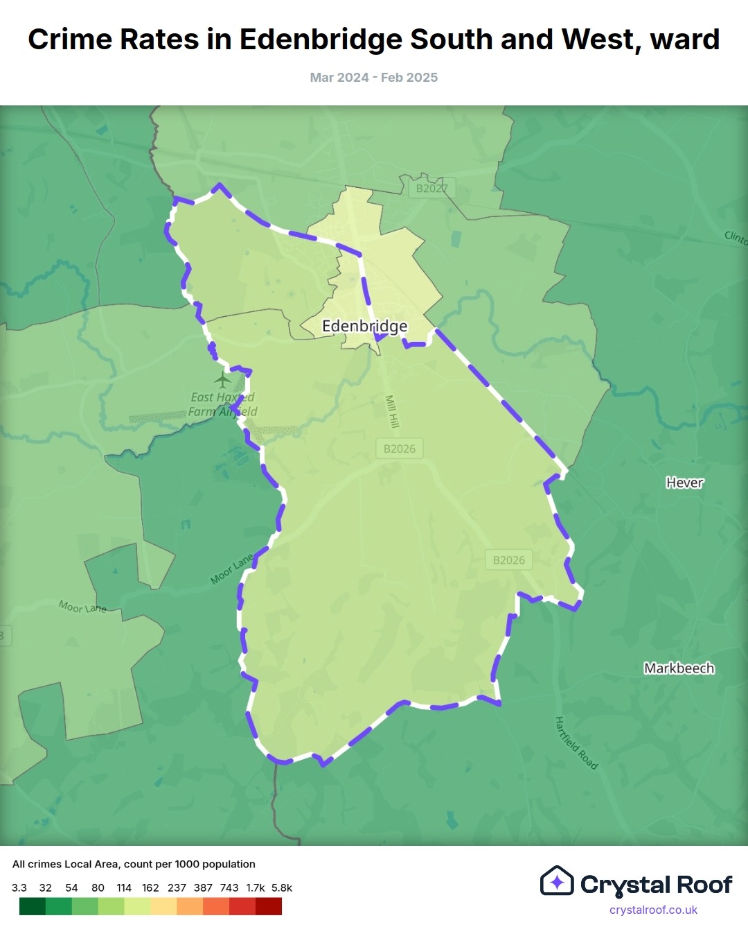 Edenbridge South and West, (ward) includes areas with the following crime ratings (see map):