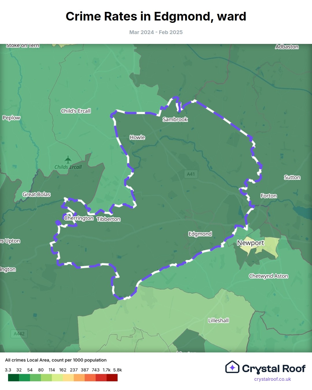 Edgmond, (ward) includes areas with the following crime ratings (see map):