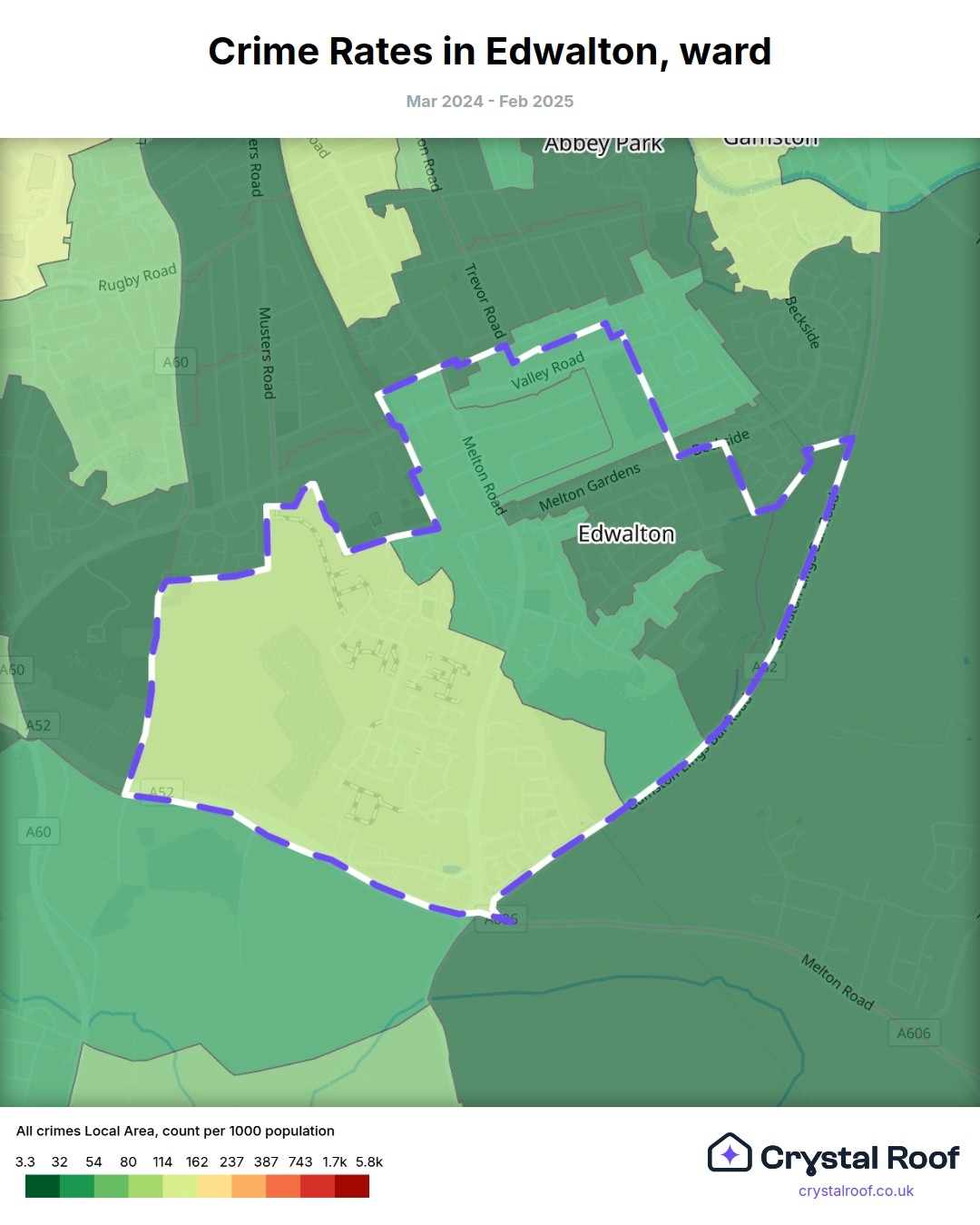 Edwalton, (ward) includes areas with the following crime ratings (see map):