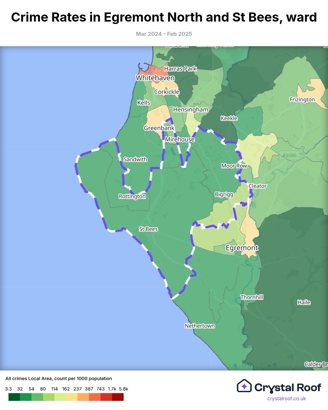 Egremont North and St Bees, (ward) includes areas with the following crime ratings (see map):