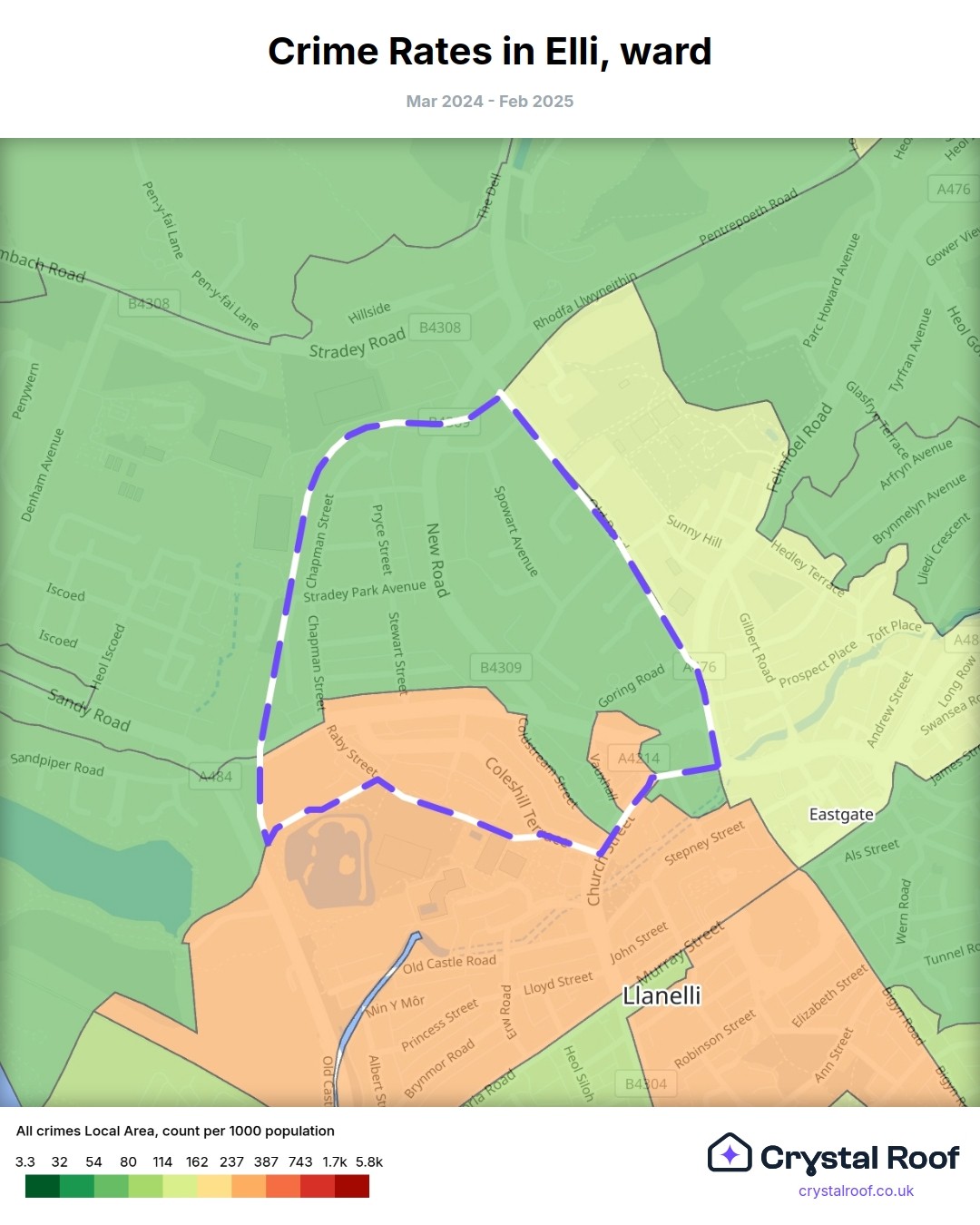 Elli, (ward) includes areas with the following crime ratings (see map):