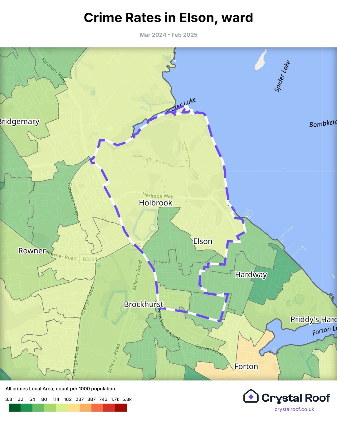 Elson, (ward) includes areas with the following crime ratings (see map):