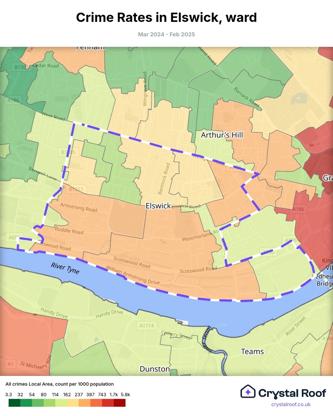 Elswick, (ward) includes areas with the following crime ratings (see map):