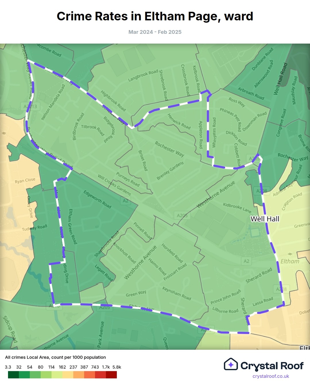 Eltham Page, (ward) includes areas with the following crime ratings (see map):