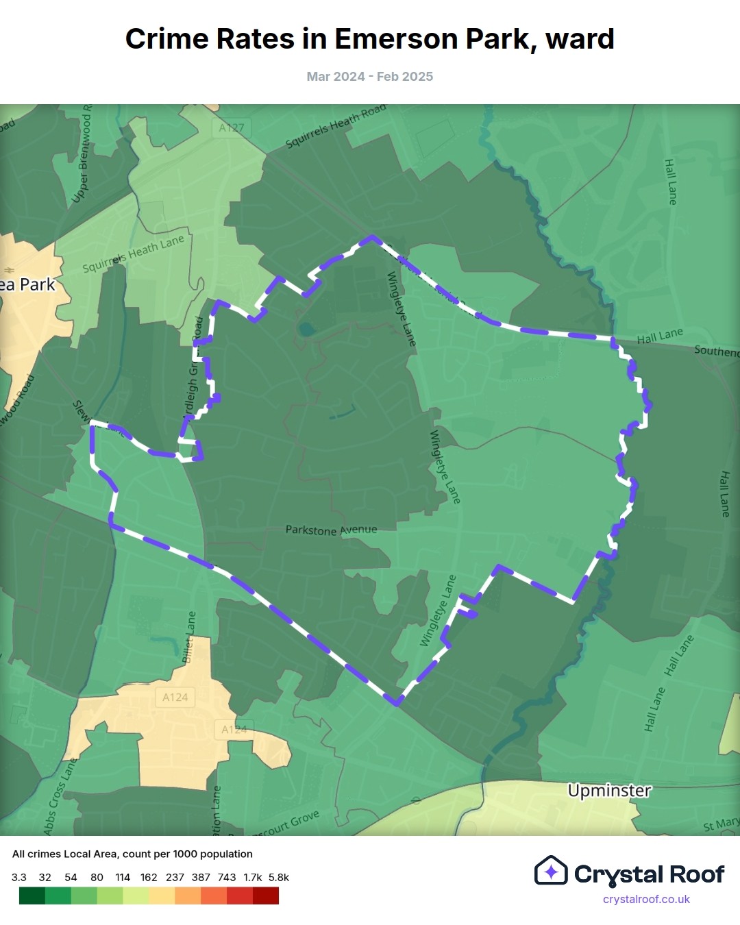 Emerson Park, (ward) includes areas with the following crime ratings (see map):