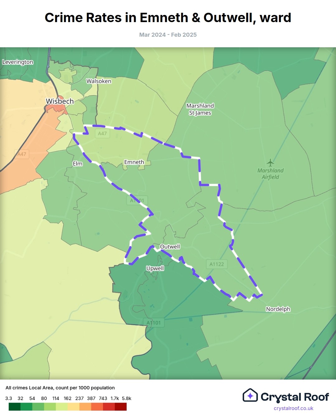 Emneth & Outwell, (ward) includes areas with the following crime ratings (see map):