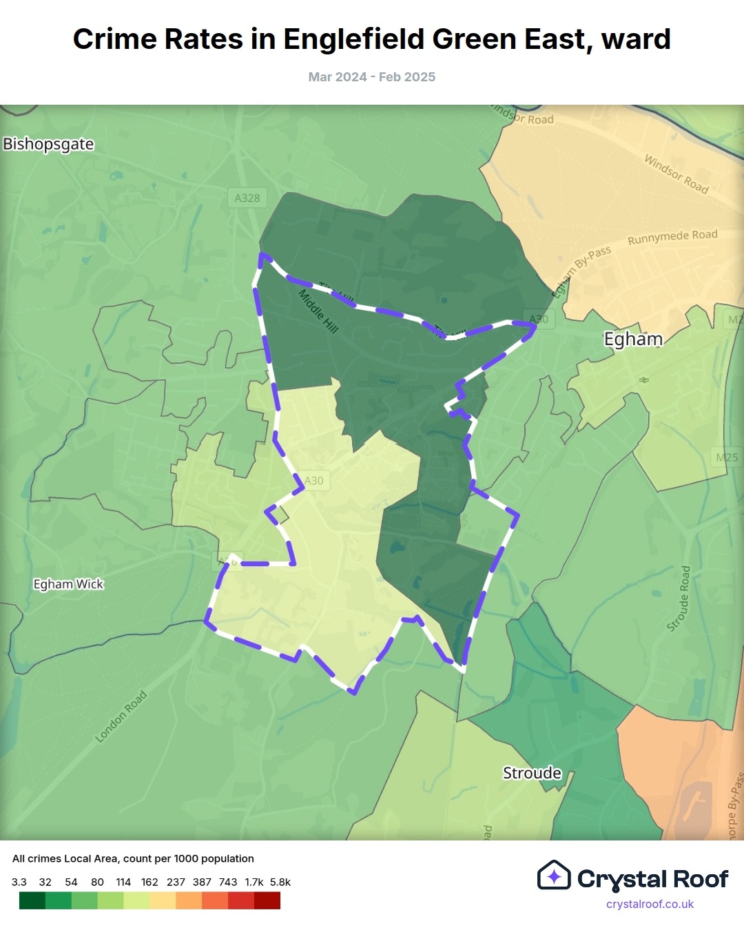 Englefield Green East, (ward) includes areas with the following crime ratings (see map):