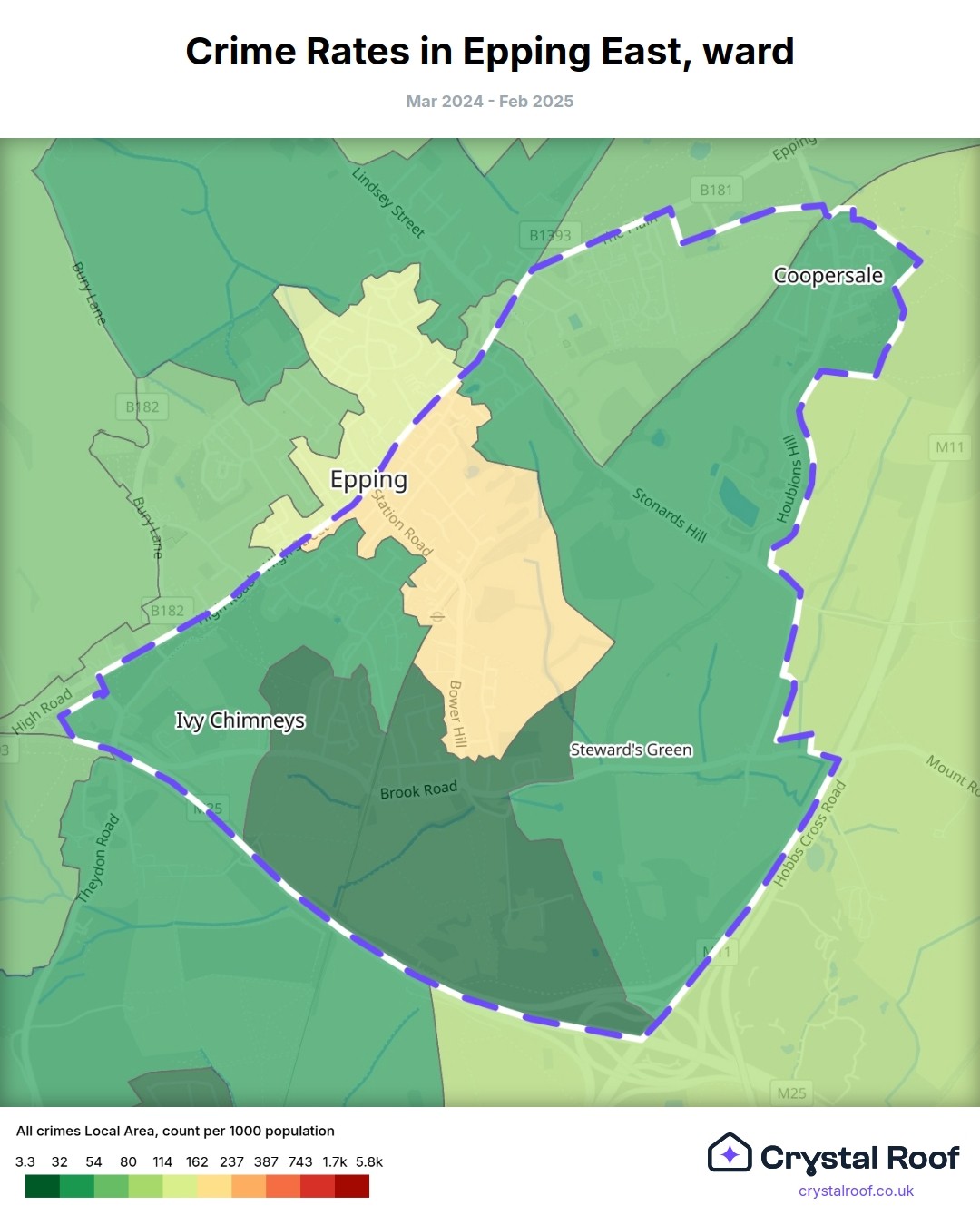 Epping East, (ward) includes areas with the following crime ratings (see map):