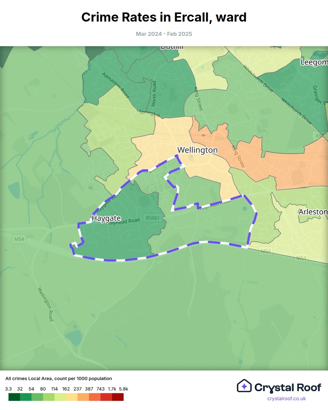 Ercall, (ward) includes areas with the following crime ratings (see map):