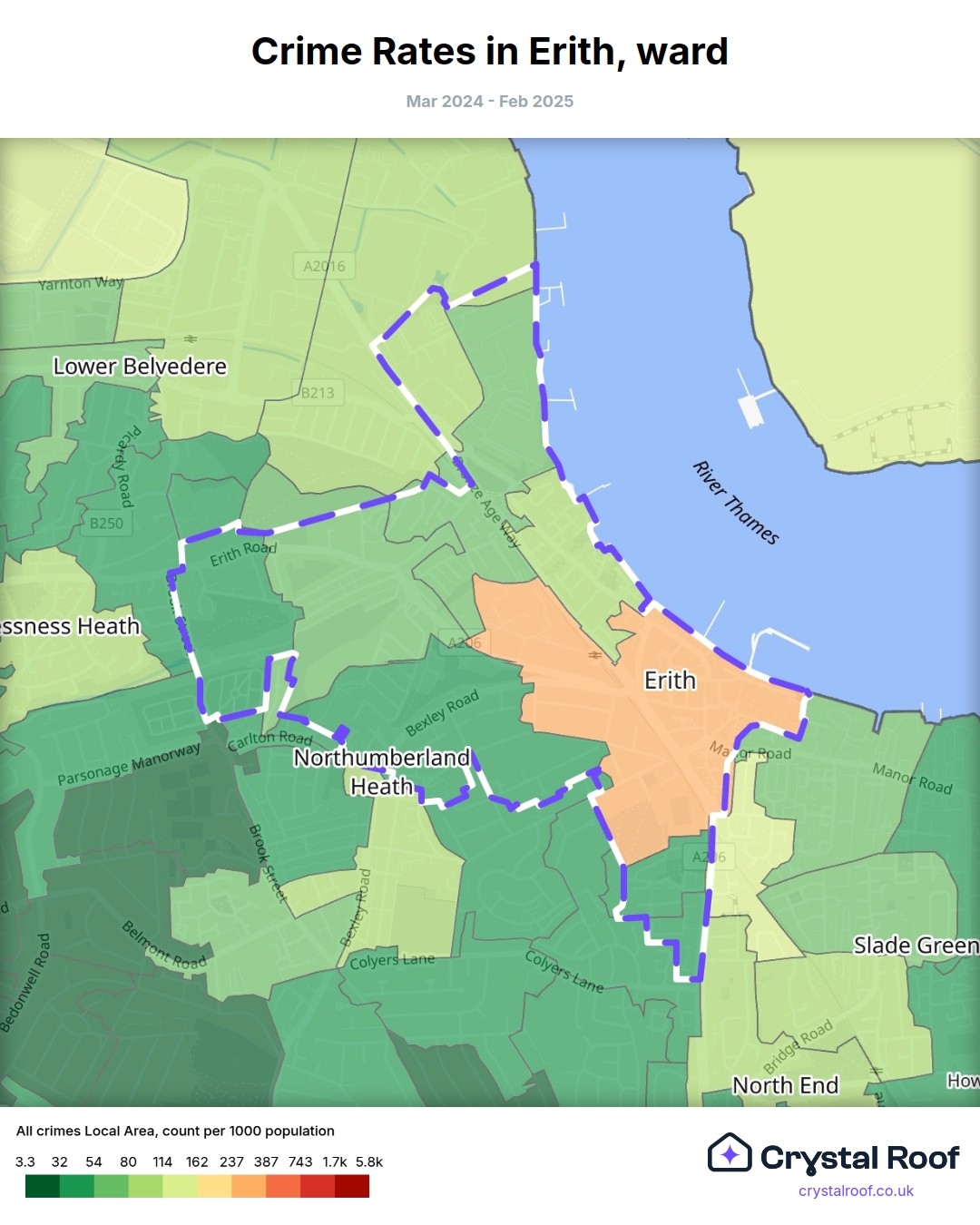 Erith, (ward) includes areas with the following crime ratings (see map):