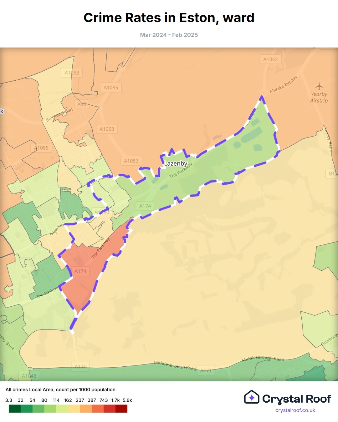 Eston, (ward) includes areas with the following crime ratings (see map):