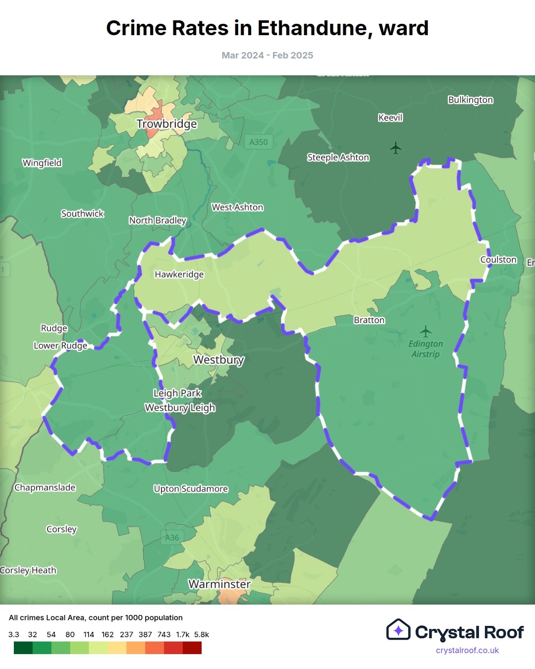 Ethandune, (ward) includes areas with the following crime ratings (see map):