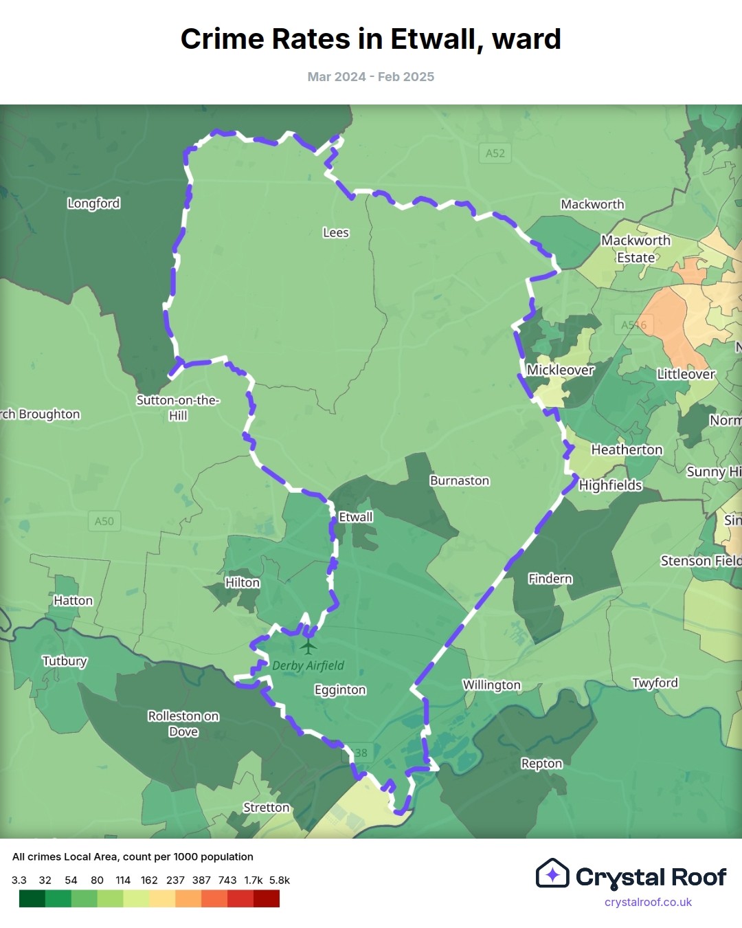 Etwall, (ward) includes areas with the following crime ratings (see map):
