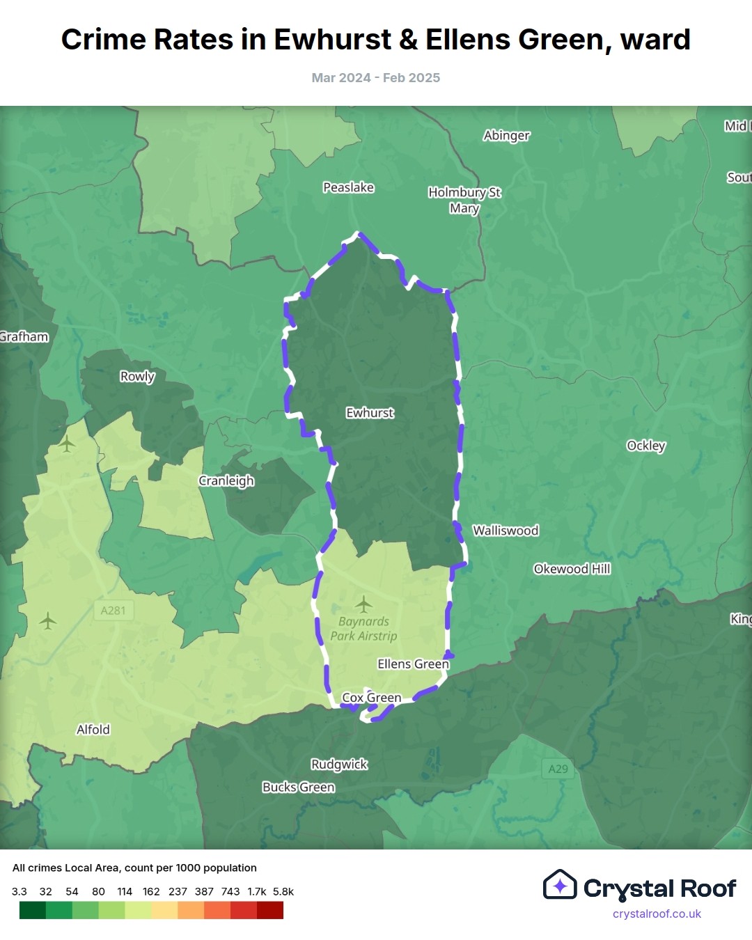 Ewhurst & Ellens Green, (ward) includes areas with the following crime ratings (see map):