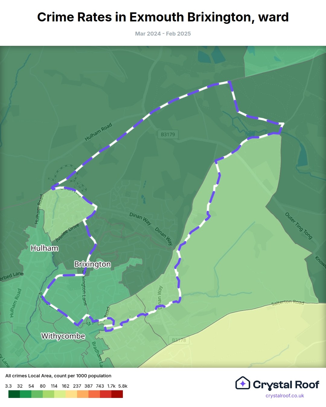 Exmouth Brixington, (ward) includes areas with the following crime ratings (see map):