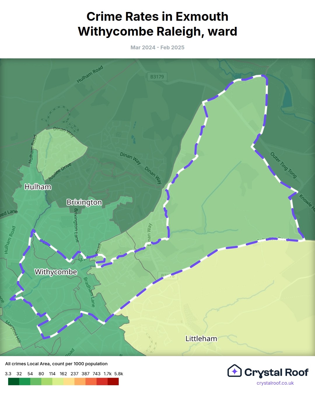 Exmouth Withycombe Raleigh, (ward) includes areas with the following crime ratings (see map):