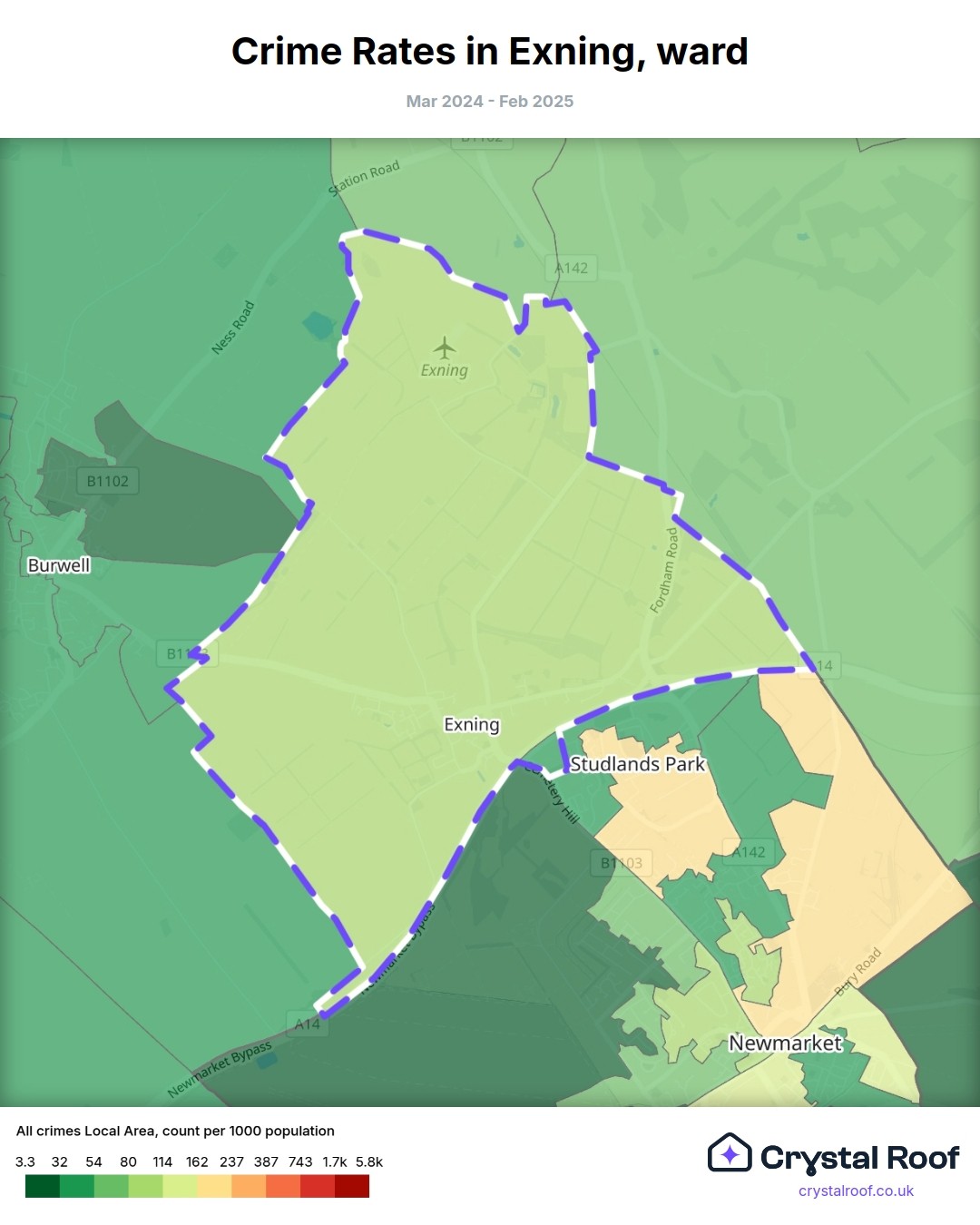 Exning, (ward) includes areas with the following crime ratings (see map):