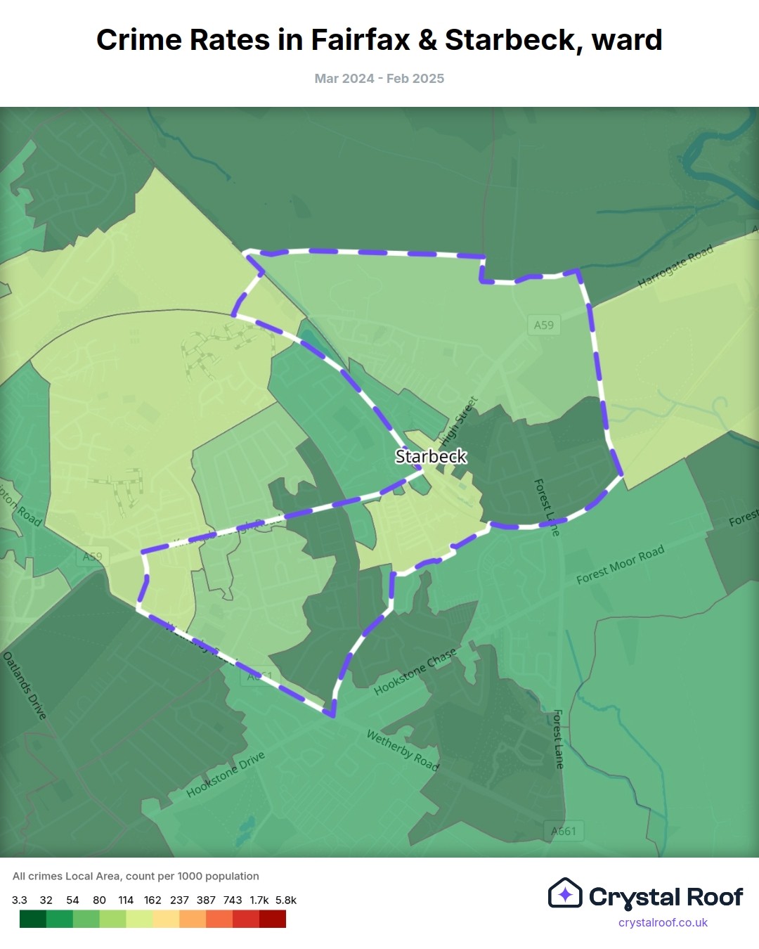 Fairfax & Starbeck, (ward) includes areas with the following crime ratings (see map):