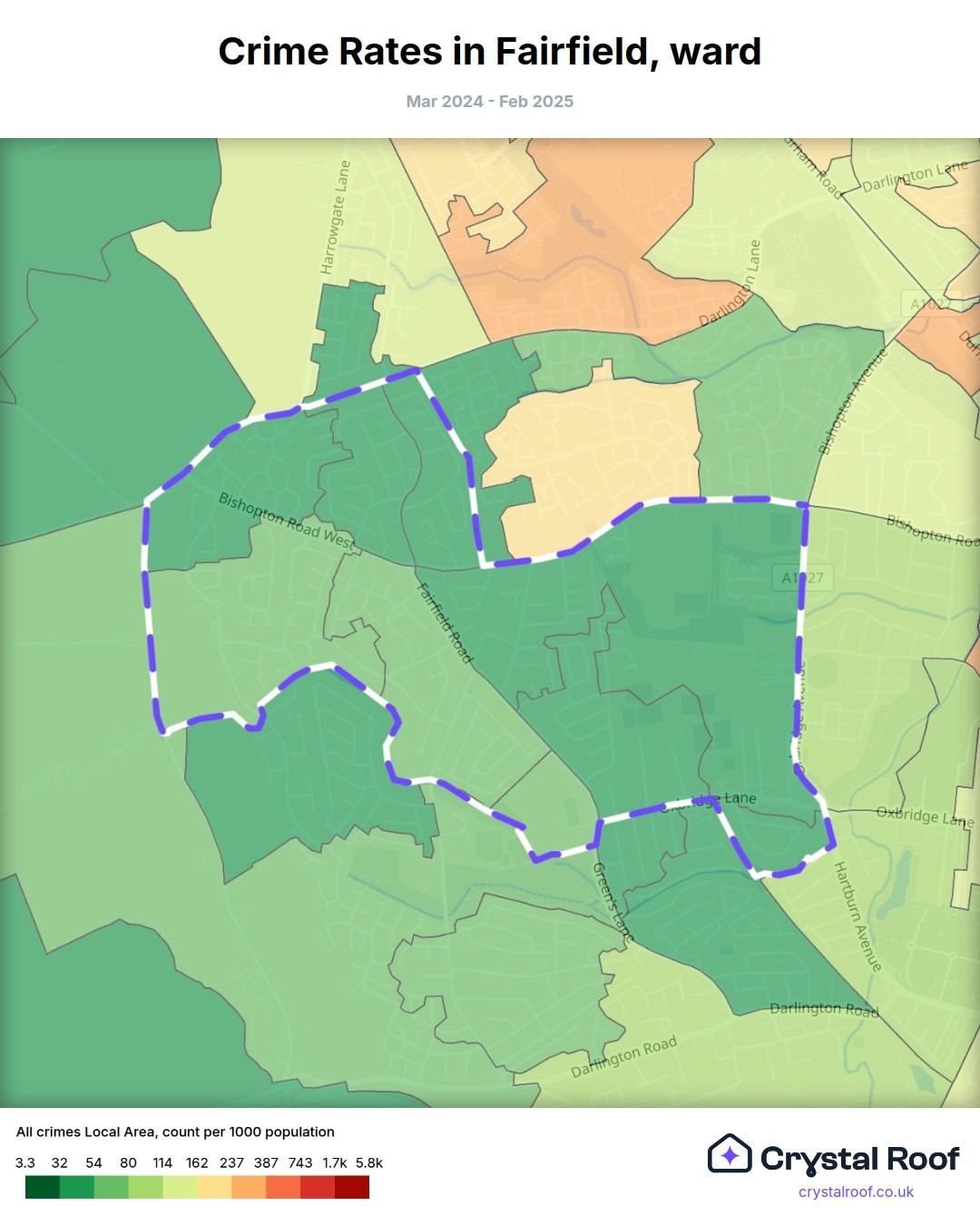 Fairfield, (ward) includes areas with the following crime ratings (see map):