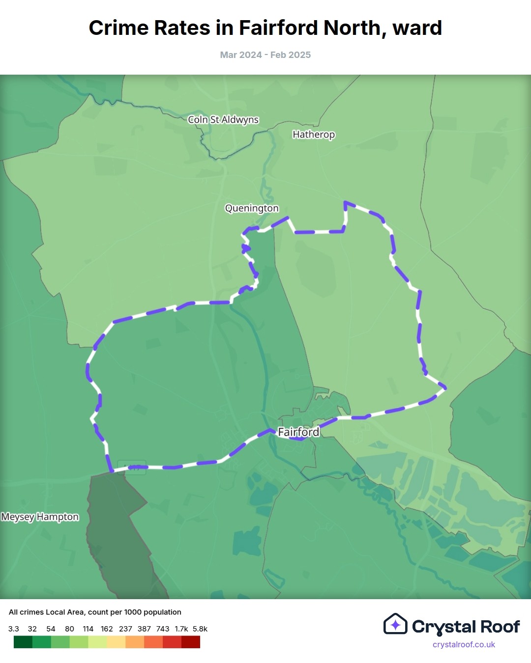 Fairford North, (ward) includes areas with the following crime ratings (see map):