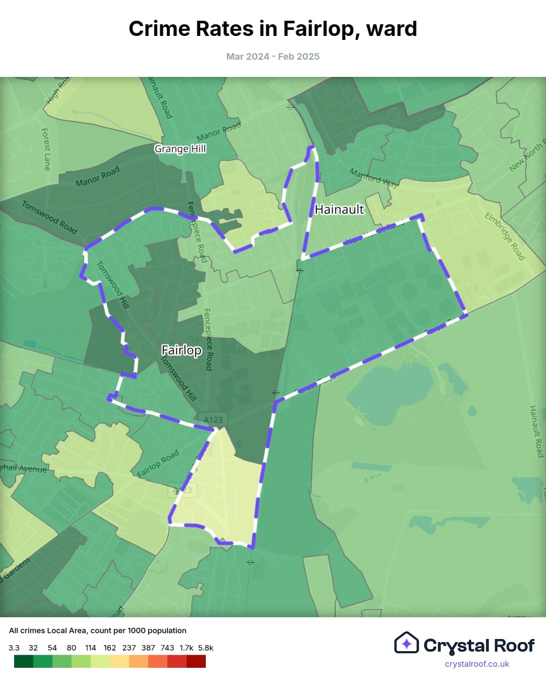 Fairlop, (ward) includes areas with the following crime ratings (see map):