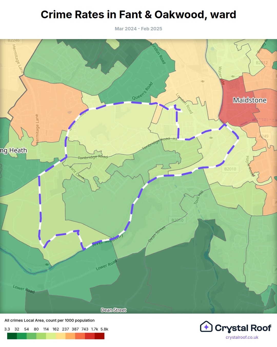 Fant & Oakwood, (ward) includes areas with the following crime ratings (see map):