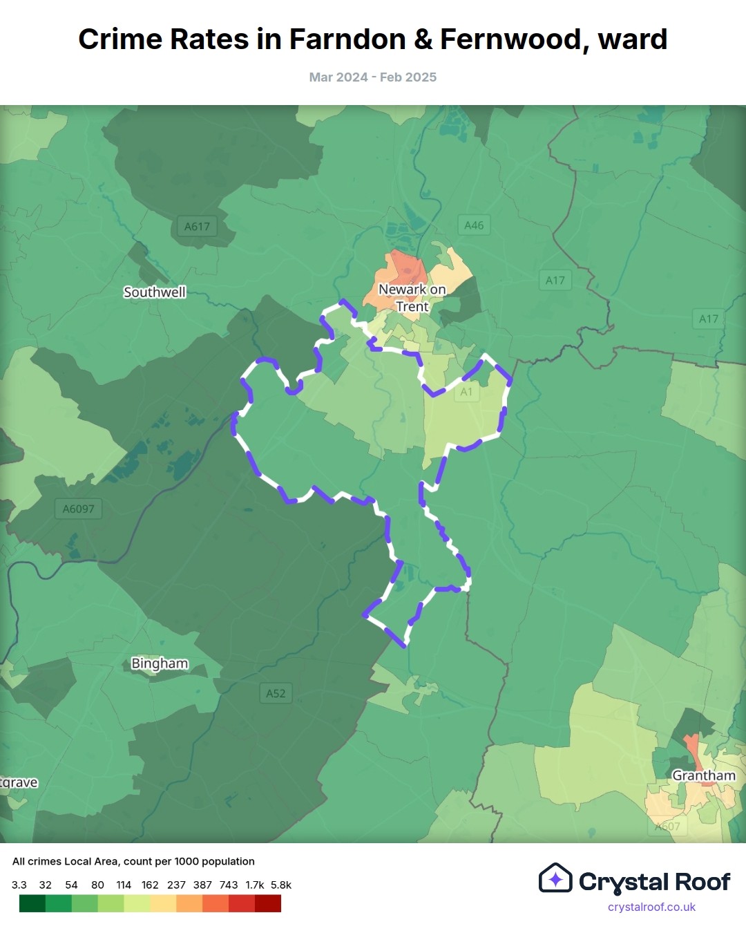 Farndon & Fernwood, (ward) includes areas with the following crime ratings (see map):