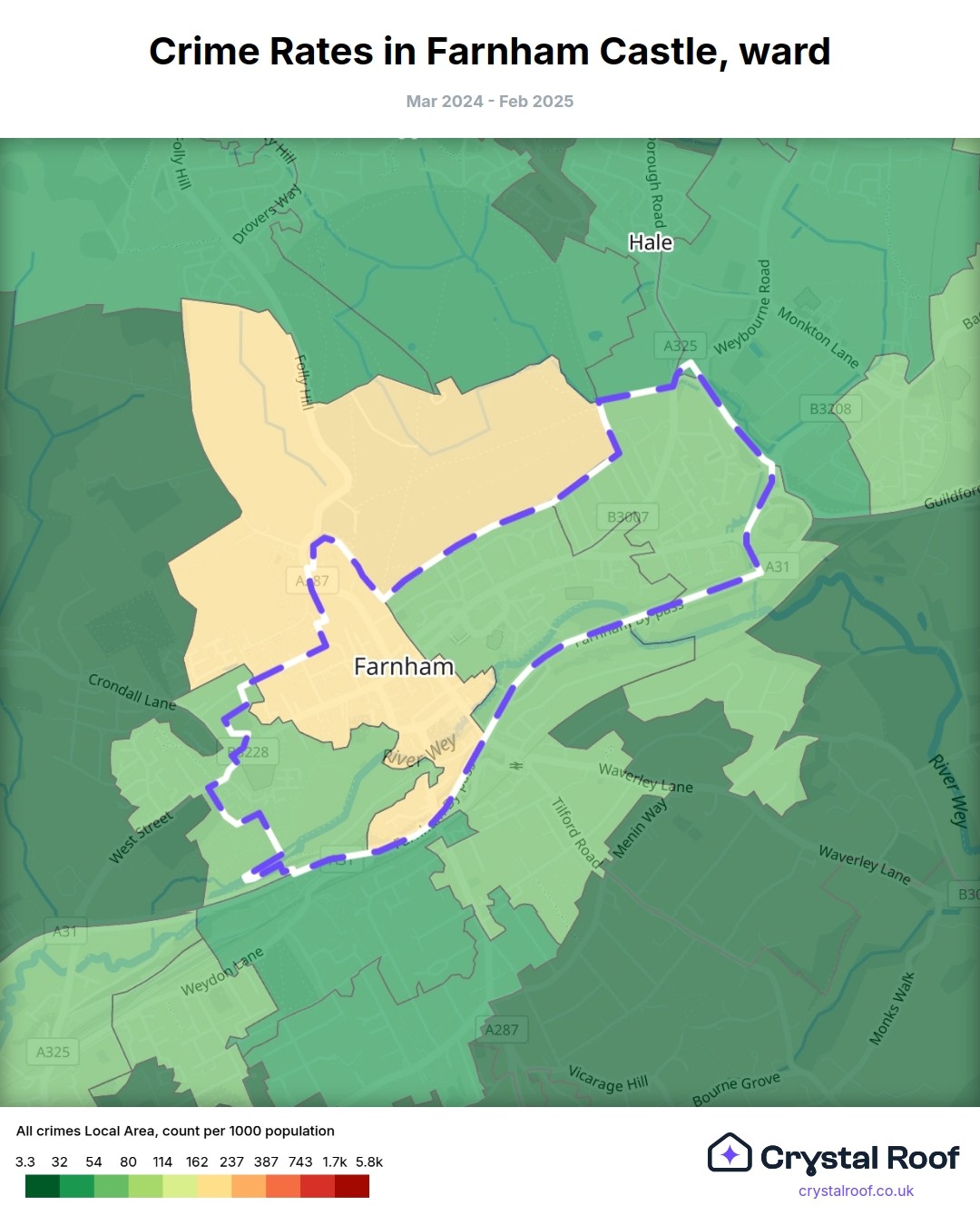 Farnham Castle, (ward) includes areas with the following crime ratings (see map):