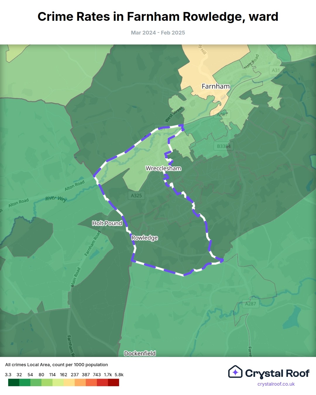 Farnham Rowledge, (ward) includes areas with the following crime ratings (see map):