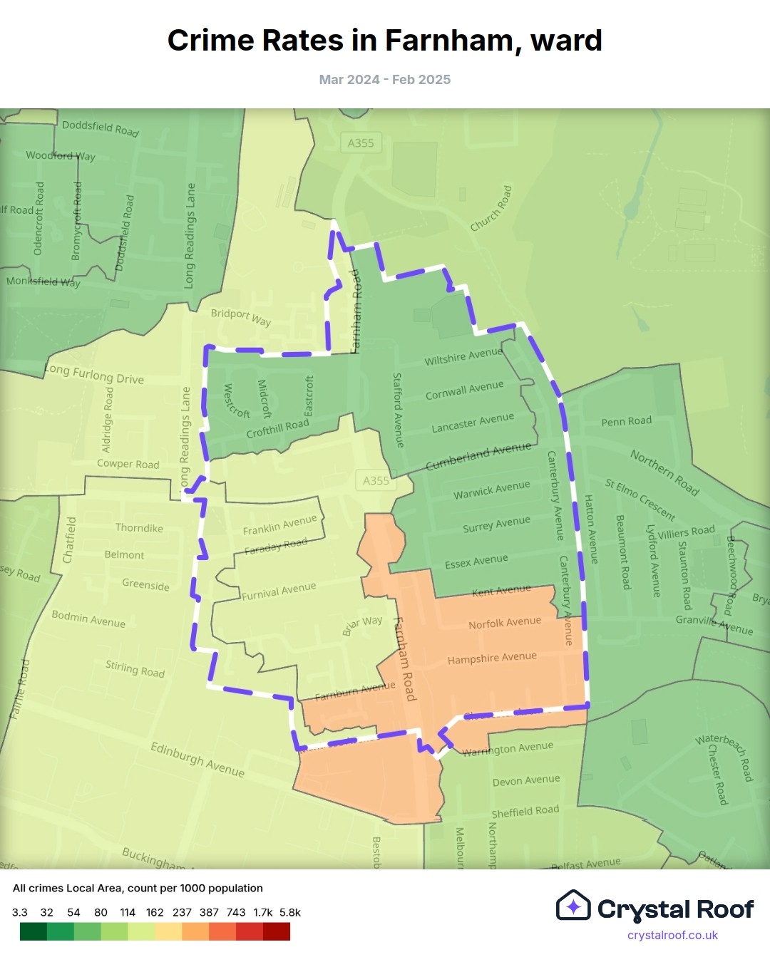Farnham, (ward) includes areas with the following crime ratings (see map):