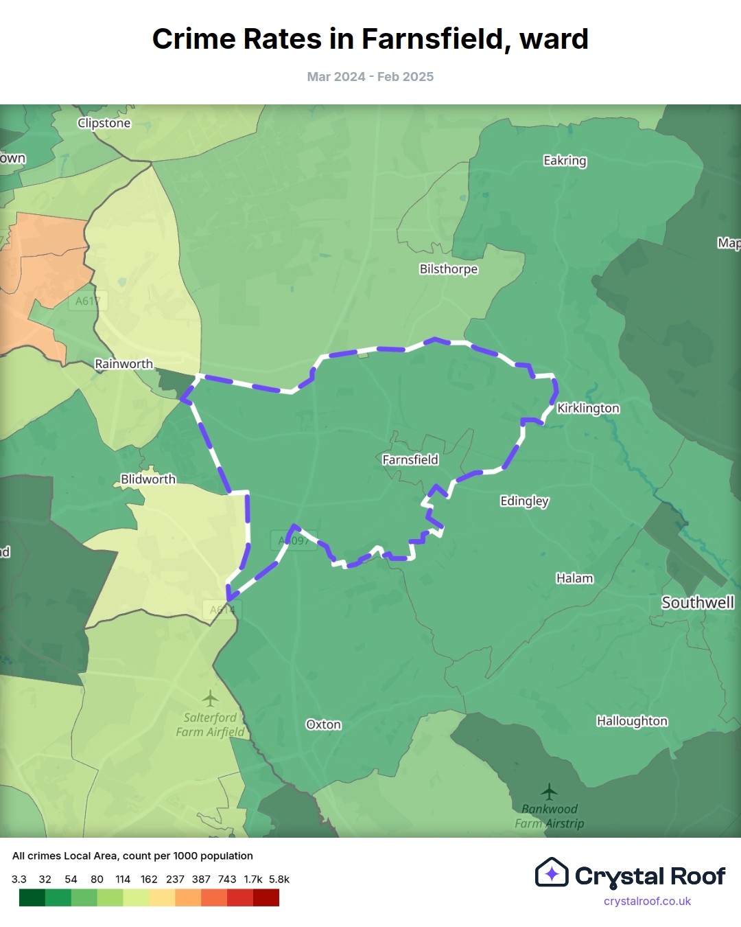Farnsfield, (ward) includes areas with the following crime ratings (see map):