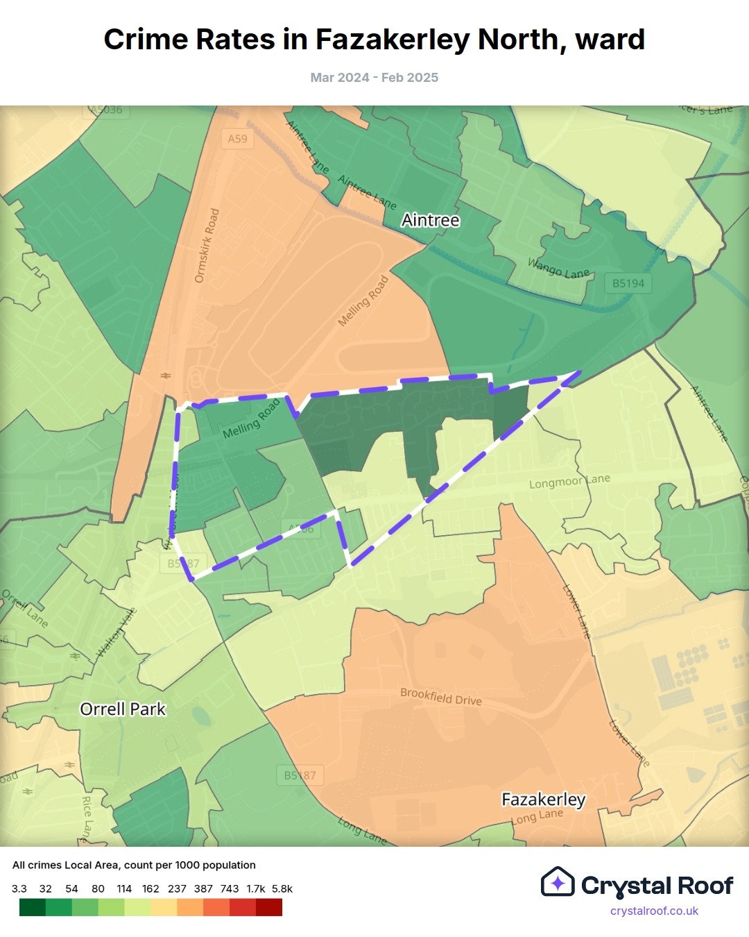 Fazakerley North, (ward) includes areas with the following crime ratings (see map):