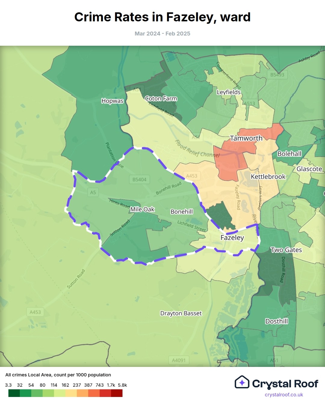 Fazeley, (ward) includes areas with the following crime ratings (see map):