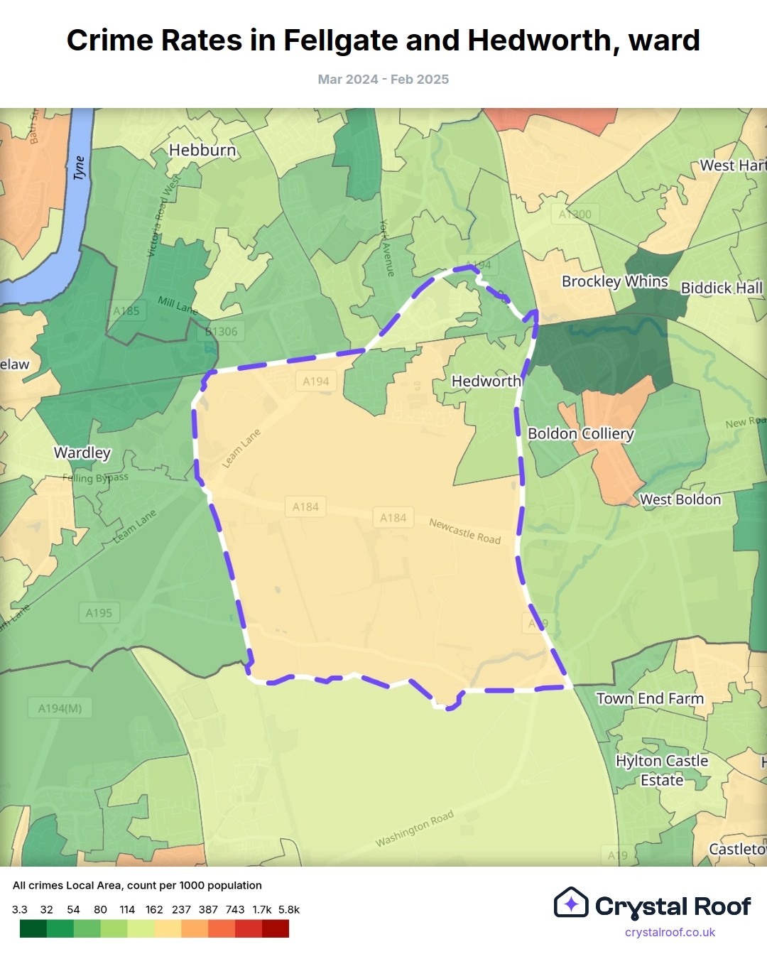 Fellgate and Hedworth, (ward) includes areas with the following crime ratings (see map):