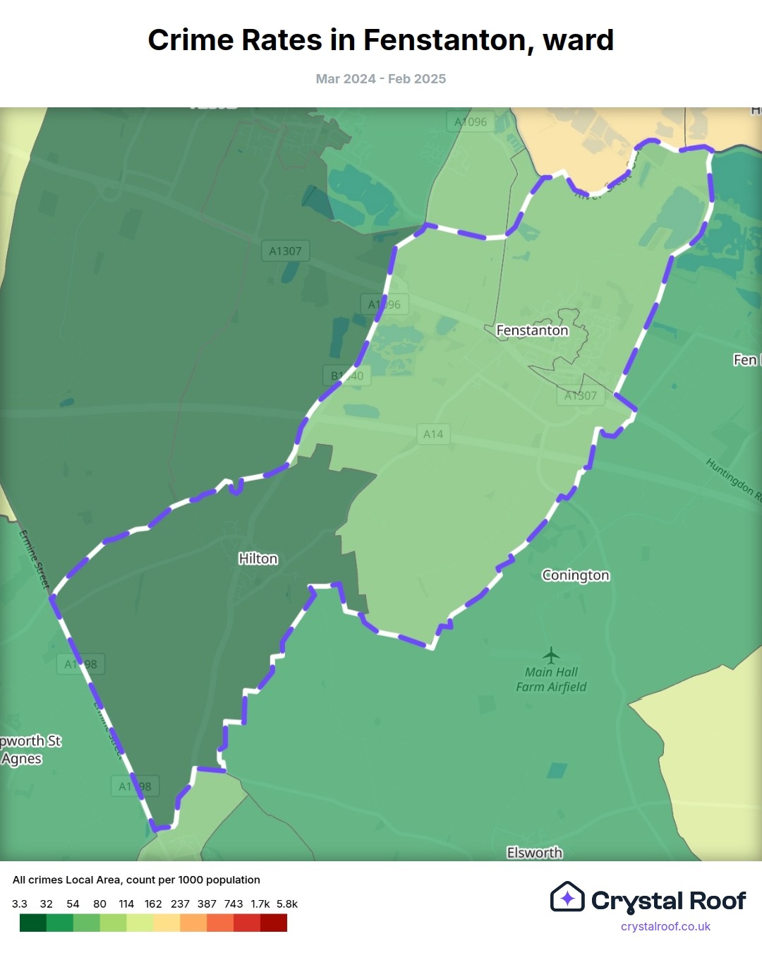 Fenstanton, (ward) includes areas with the following crime ratings (see map):