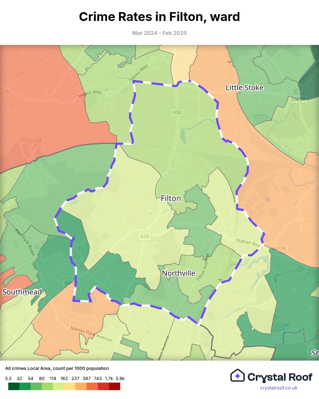 Filton, (ward) includes areas with the following crime ratings (see map):