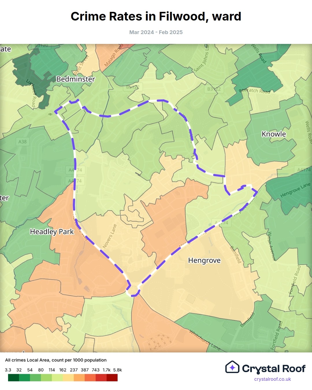 Filwood, (ward) includes areas with the following crime ratings (see map):