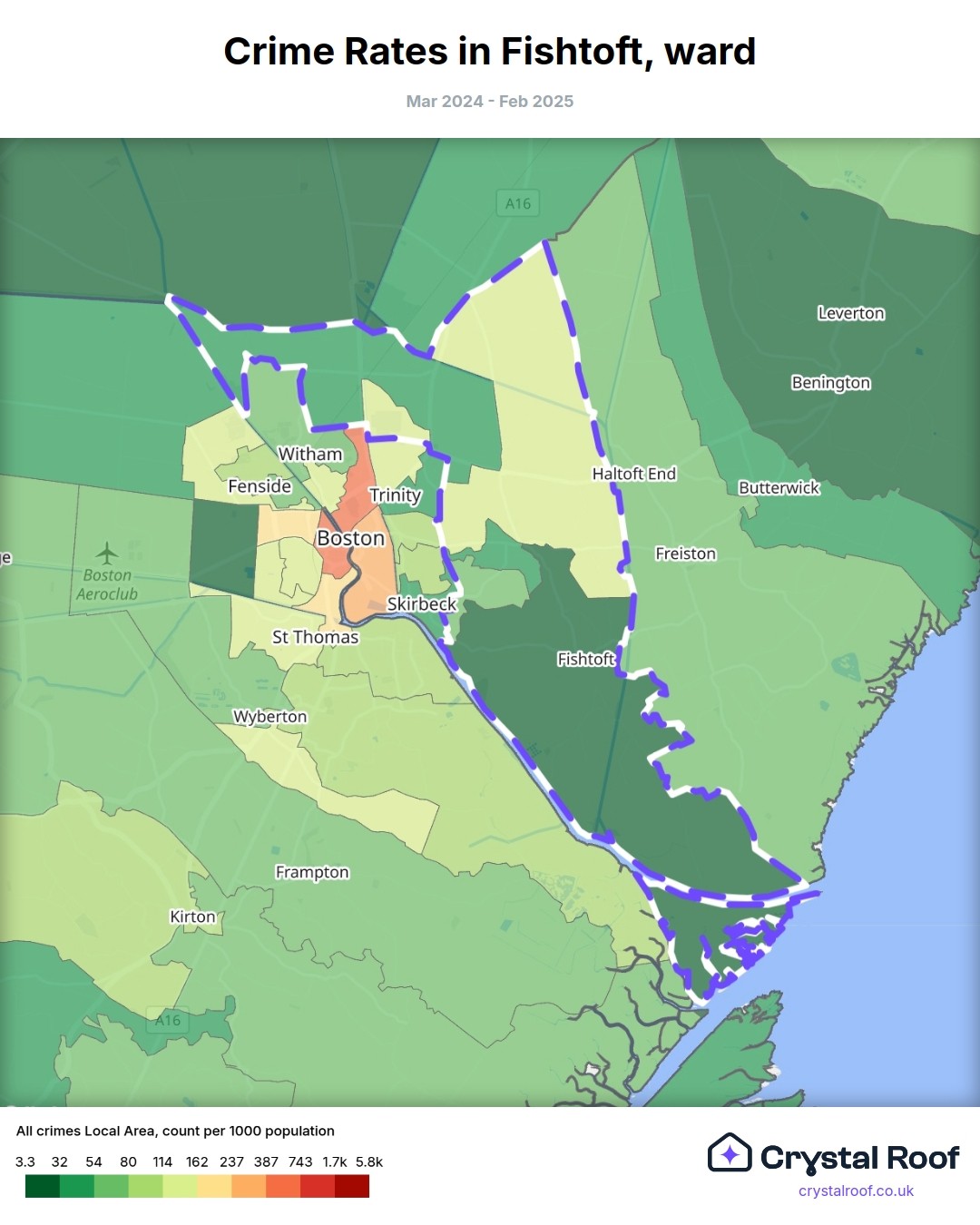 Fishtoft, (ward) includes areas with the following crime ratings (see map):