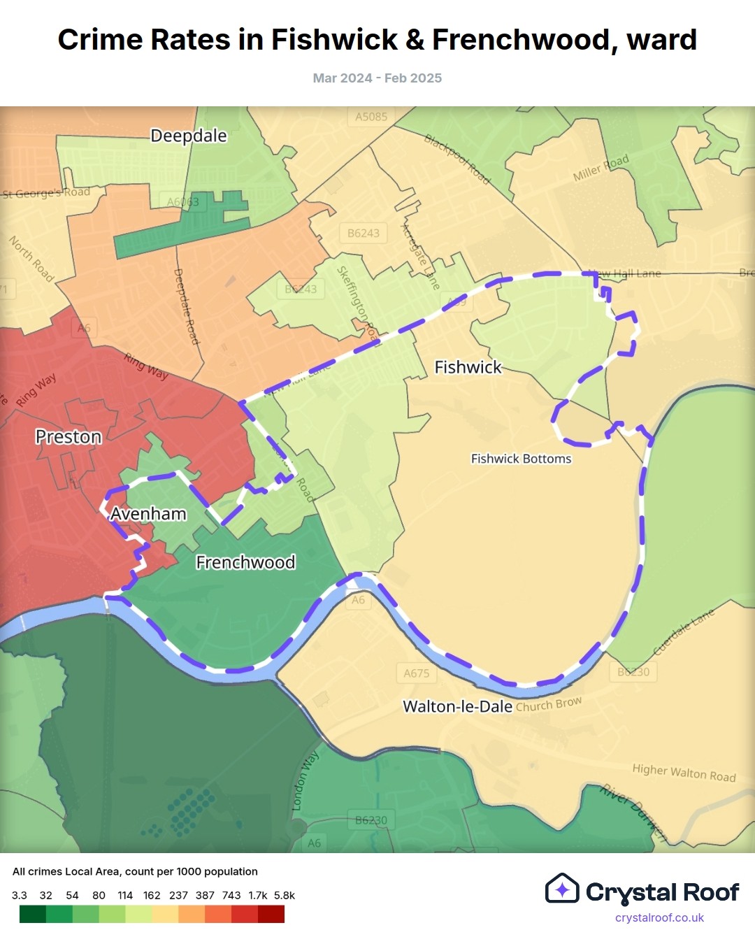 Fishwick & Frenchwood, (ward) includes areas with the following crime ratings (see map):