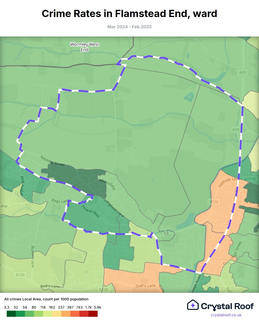 Flamstead End, (ward) includes areas with the following crime ratings (see map):