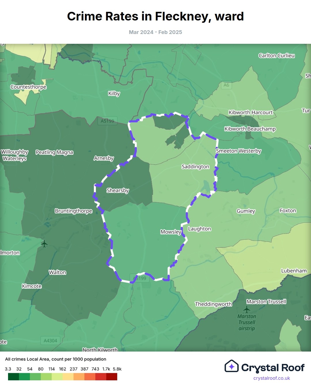 Fleckney, (ward) includes areas with the following crime ratings (see map):