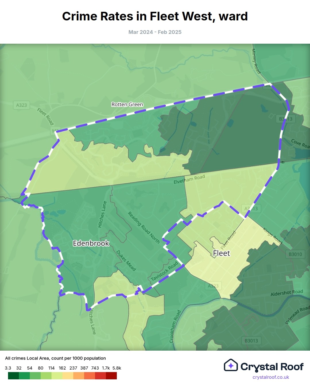 Fleet West, (ward) includes areas with the following crime ratings (see map):