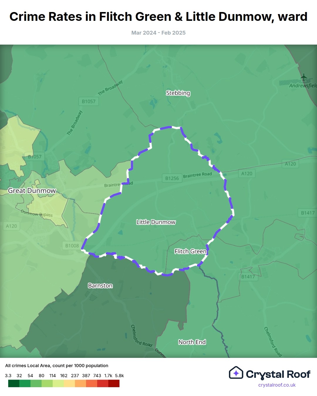 Flitch Green & Little Dunmow, (ward) includes areas with the following crime ratings (see map):