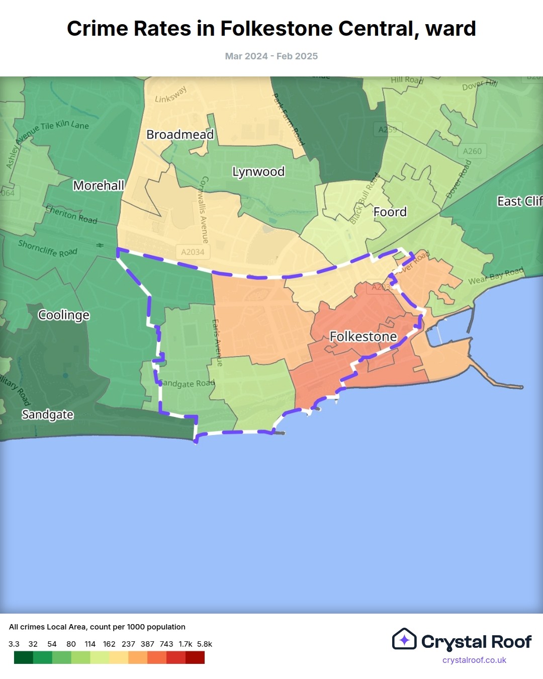 Folkestone Central, (ward) includes areas with the following crime ratings (see map):