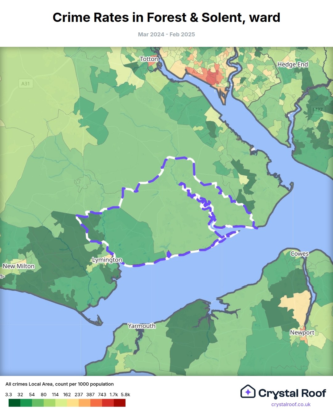 Forest & Solent, (ward) includes areas with the following crime ratings (see map):