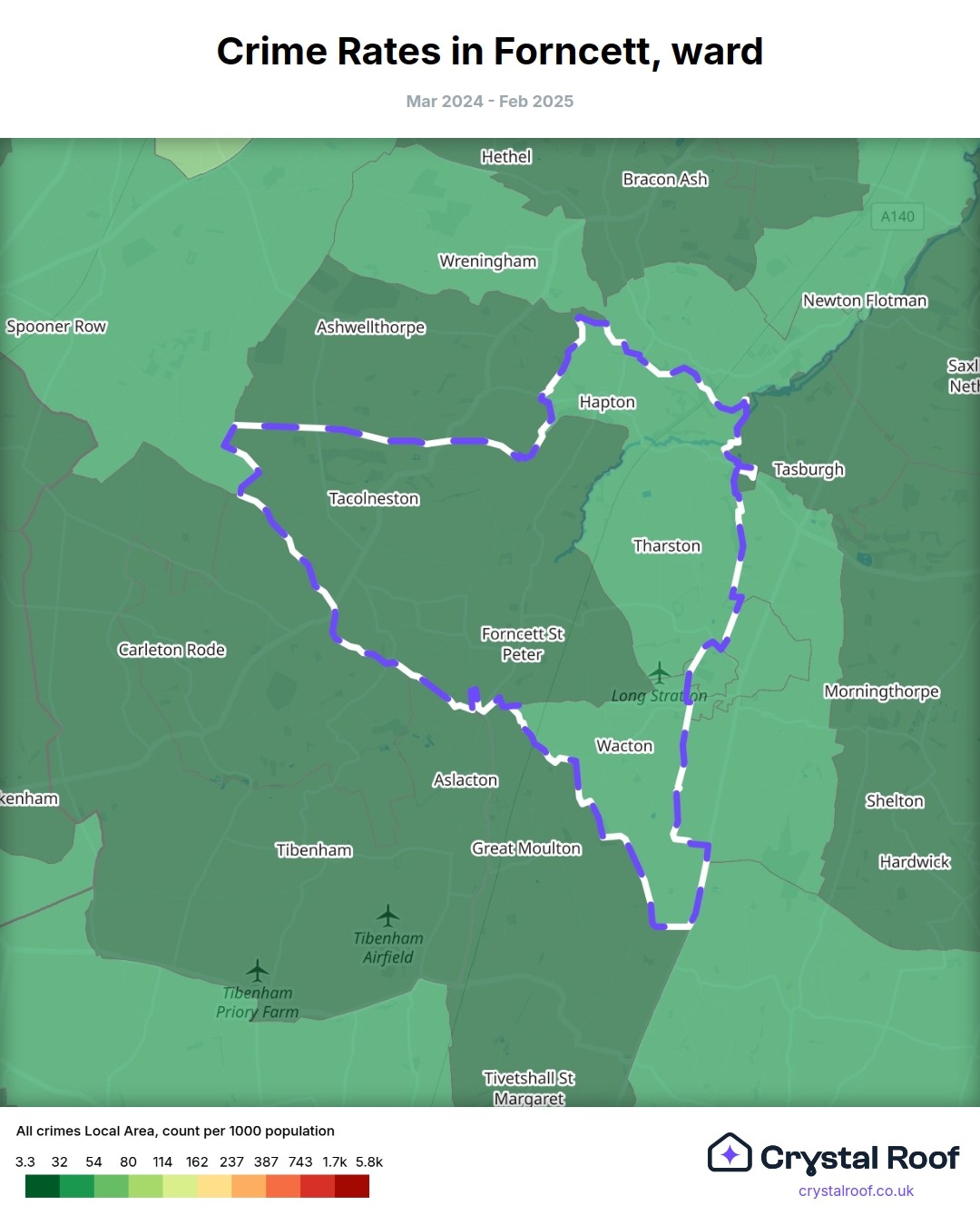Forncett, (ward) includes areas with the following crime ratings (see map):