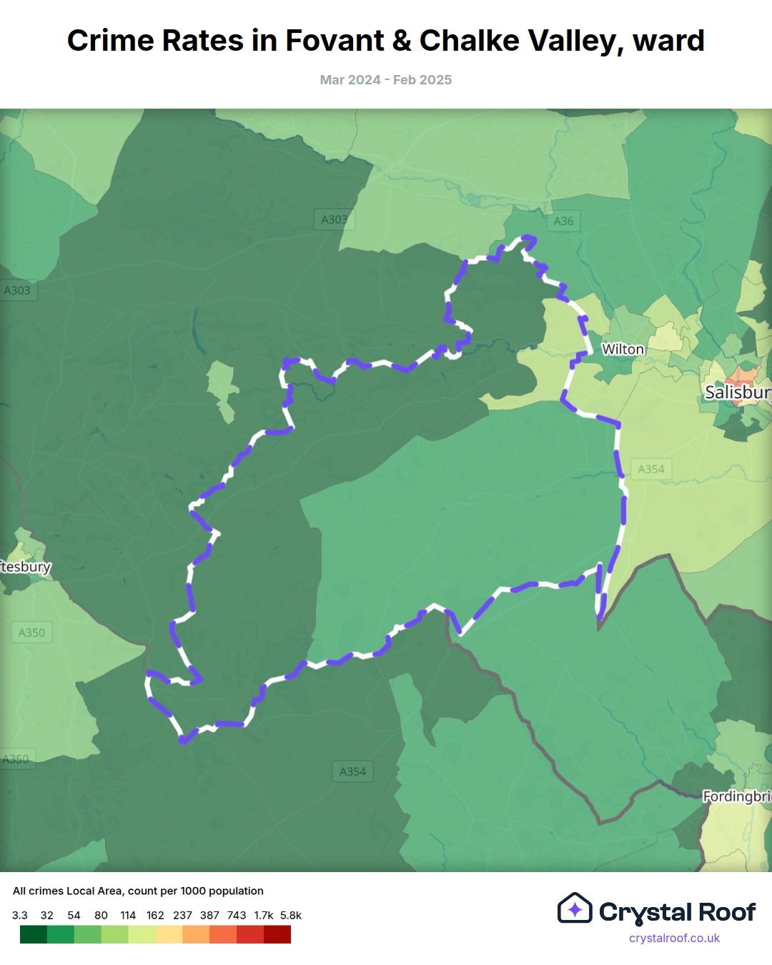 Fovant & Chalke Valley, (ward) includes areas with the following crime ratings (see map):